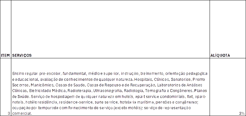 Art. 21 O item 03 da Tabela I – Imposto Sobre Serviço de Qualquer Natureza – ISSQN, anexa à Lei Complementar nº 043, de 23 de dezembro de 1997, passa a vigorar com a seguinte redação: